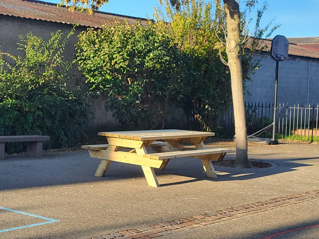 Ces tables s’intègrent parfaitement dans notre cour et participent à rendre les temps de pause encore plus agréables et collectifs.